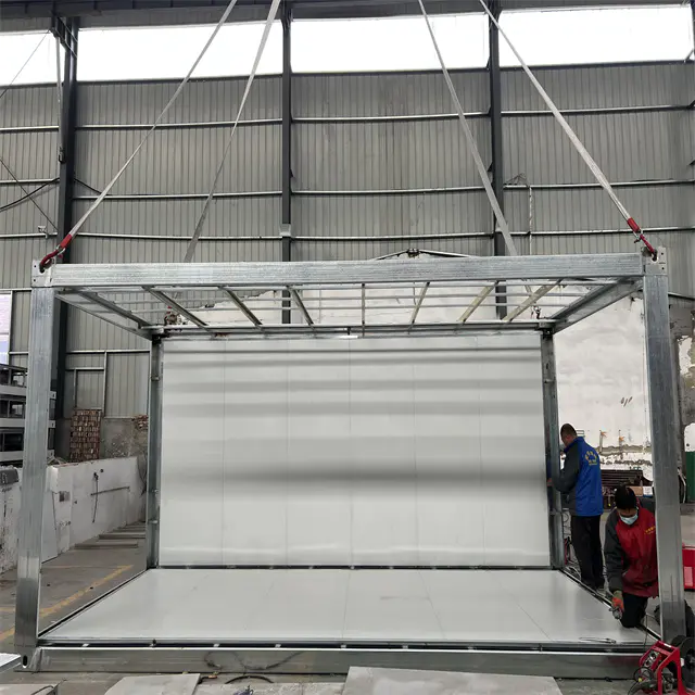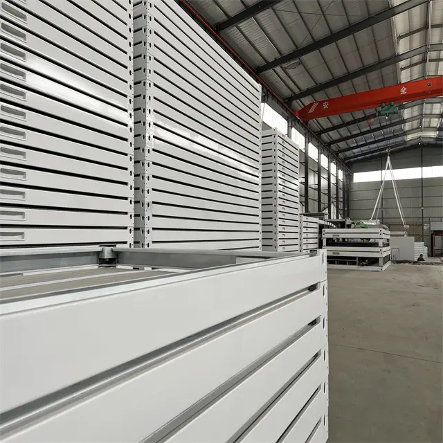 Vi har våra egna två fabriker, totalt mer än 20 000 m² anläggning, vi har 6 stålplåtpressmaskiner, 6 svetsningsproduktionslinje, 2 bakfärgrum och 1 Sandwich Panel Wall Production Line, dessa ovan är hela produktionslinjen för prefabhus, Då kan vi se till att alla våra fabriks hus är kvalificerad.