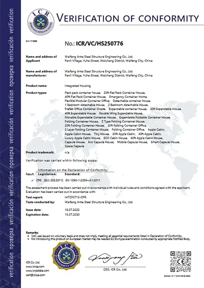 Vi byggde 120 enheter Apple Cabin i Kanada 2024, exporterade 500 enheter Flat Pack Container House till Ryssland 2024 och byggde 800 enheter Refuge House samarbetade med den irakiska regeringen 2023, byggde 50 enheter Flat Pack Container House i Storbritannien.